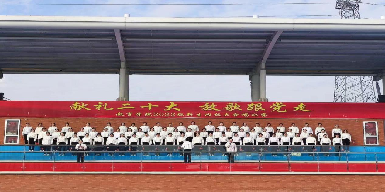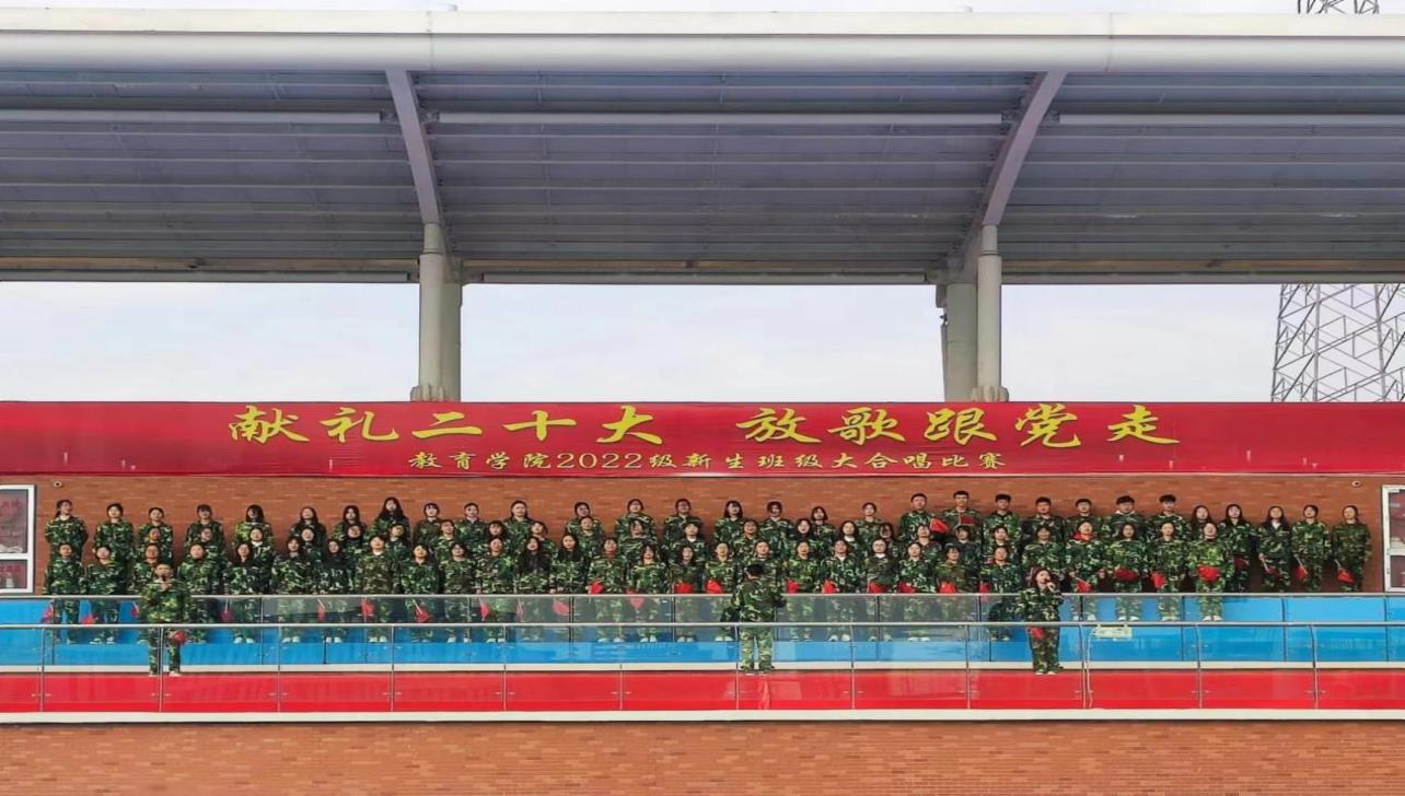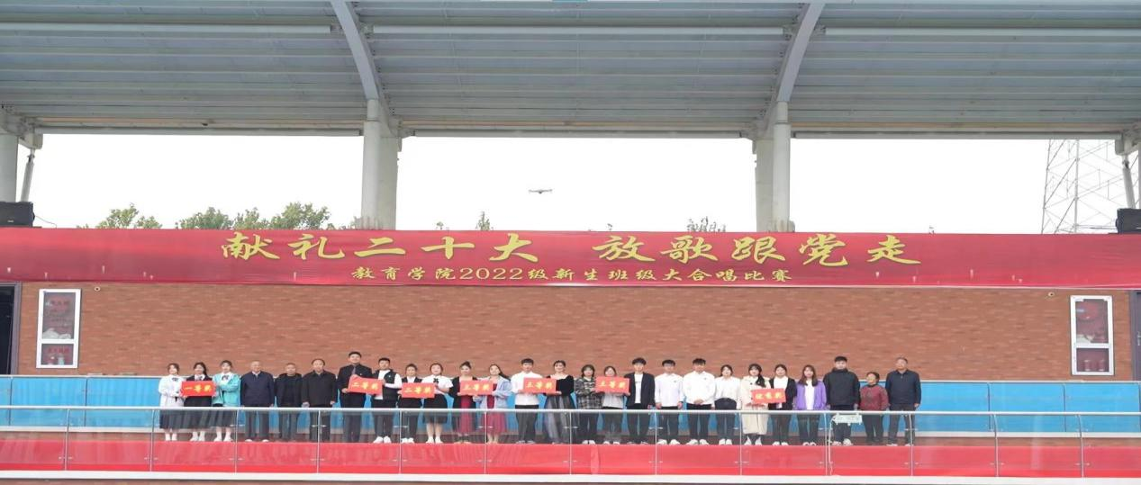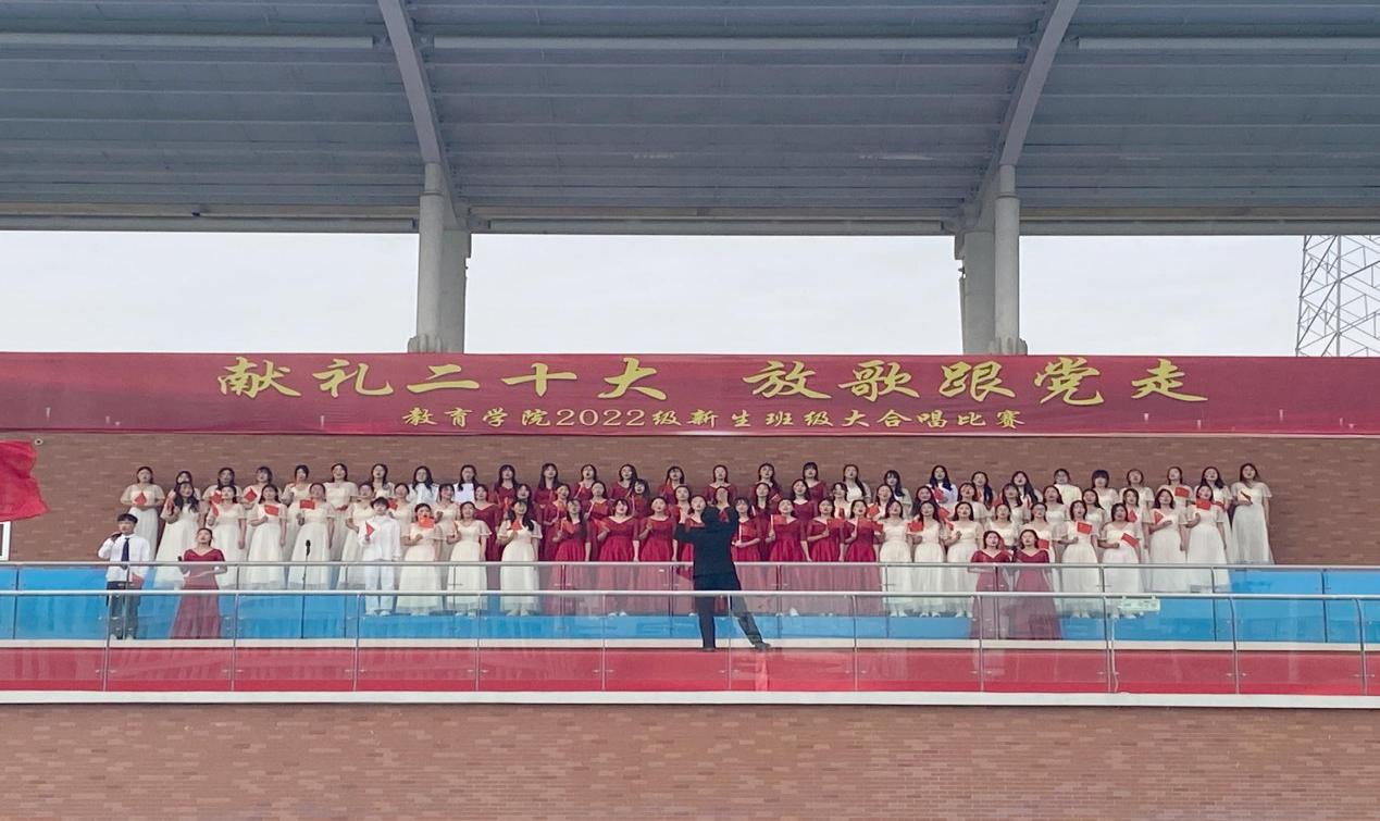在全国上下认真学习贯彻党的二十大精神之际,best365足球官网为坚定青年大学生永远跟党走的理想和信念,引导学生赓续红色血脉,厚植爱国情怀,于11月6日上午在校户外操场举办了“献礼二十大,放歌跟党走”2022级新生班级大合唱比赛,莅临比赛现场的有学校副校长汪建利、教务处处长陈国平、后勤保卫处处长程坚、办公室副主任陈杰、best365足球官网院长王家云、副院长孟向红,校团委书记刘帅克、学生处老师、best365足球官网全体辅导员以及2022级49个班级的同学,学院2021级辅导员担任了本次大合唱比赛的评委。