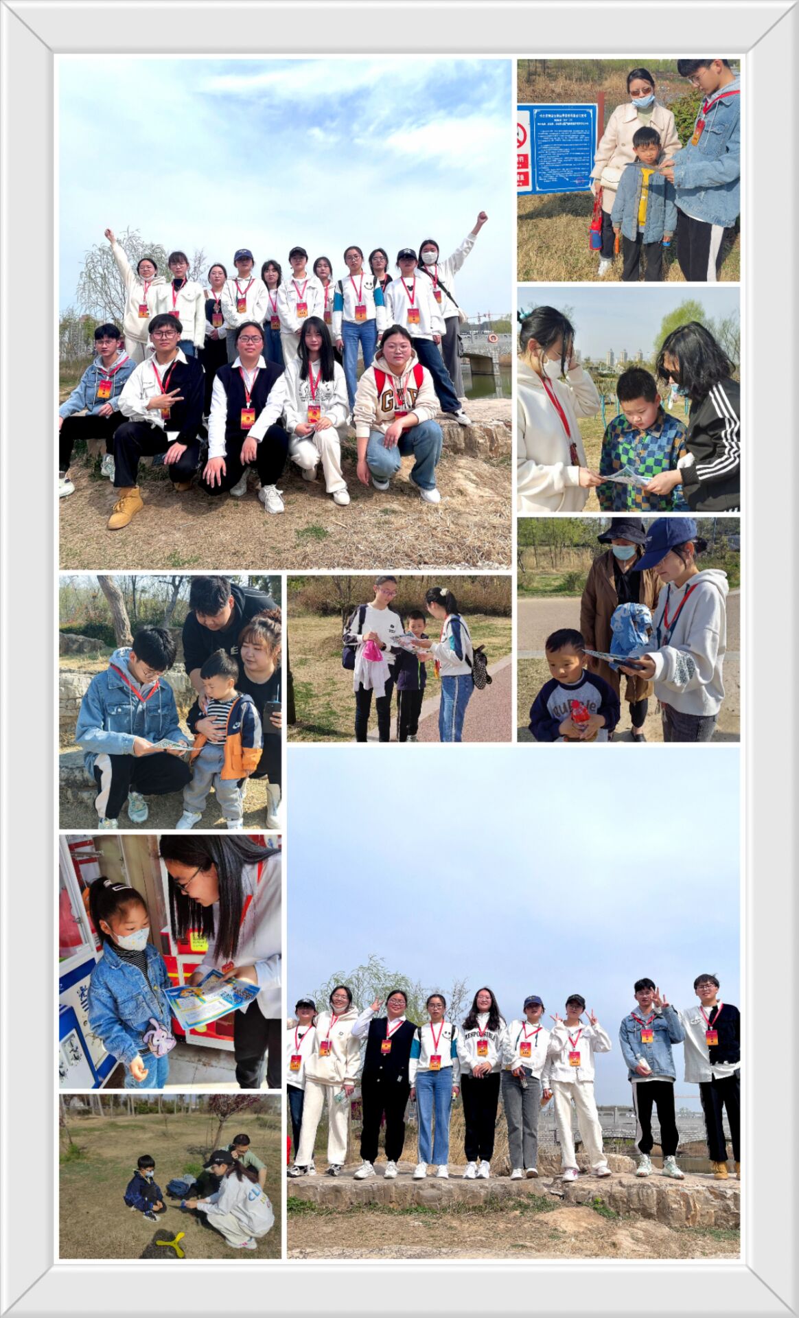 春夏季是溺水事件的高频发期,河流、坑塘边缘湿滑,极易引发溺水事故。应数专业16名志愿者学生到杜集区东湖公园,对东湖公园的游客进行防溺水宣传活动,活动分为三组,分别对成人,儿童,老年人群进行不同方式的宣传、劝导和安全提醒等。