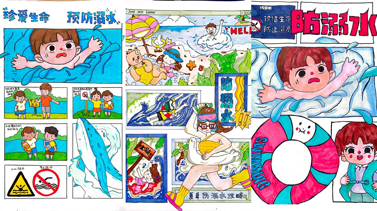 从征集的作品看,参赛作品主题突出,版面设计样式新颖、色彩明丽,作者倾注了创作热情。作品《同心防溺水,涉水请小心》从营救角度入手,线条流畅,意蕴深刻,提醒人们在增强自我防护的同时,还要避免盲目救治造成的意外伤害;《别靠近,我危险》以文艺主打,丰富的想象力中更包含了对有效避免溺水事件发生的深度思考;《防溺水你我同行》蓝绿底色,图文并茂,直观地展现了作者的独特视角。