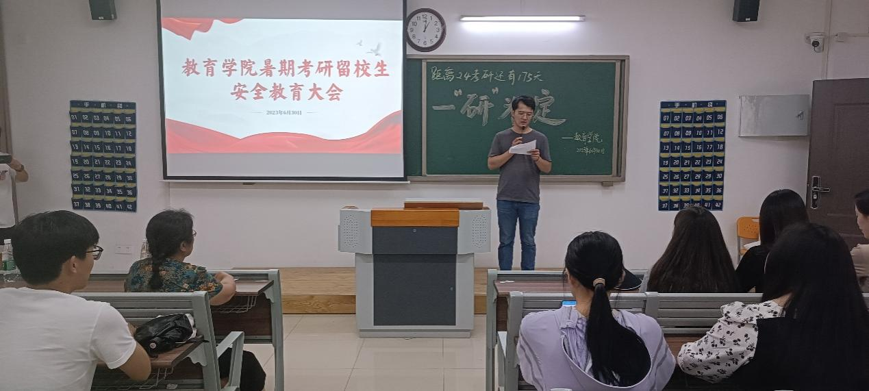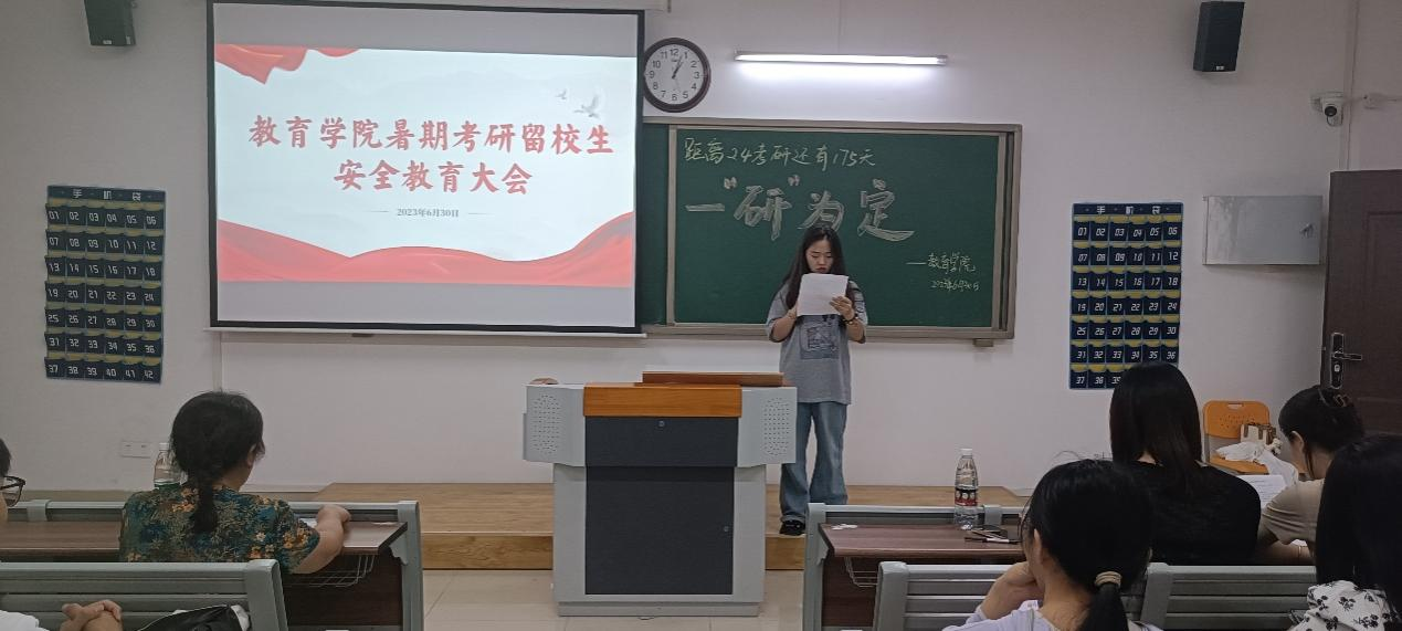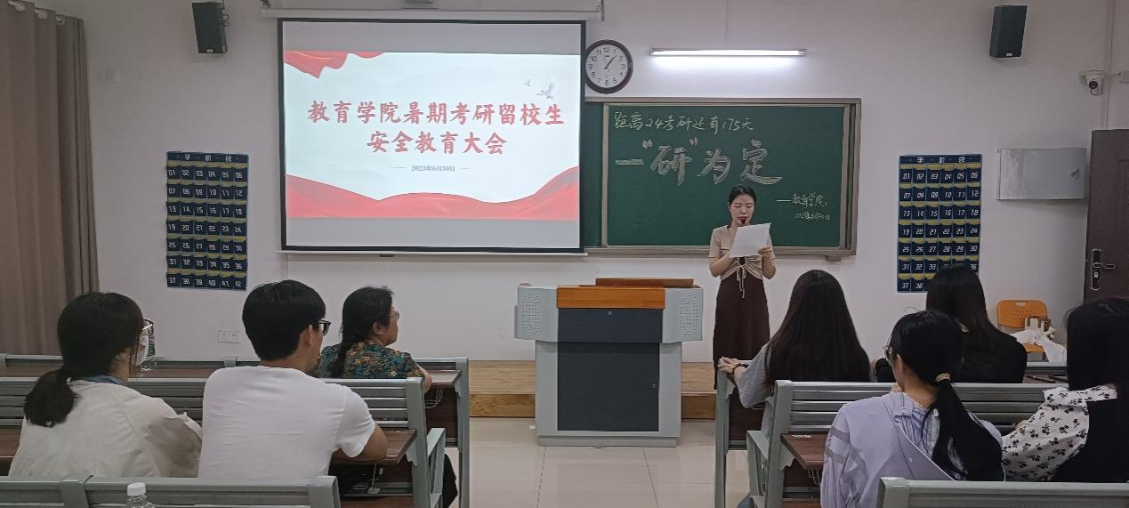 本次暑期考研留校生安全教育大会,帮助全体留校学生进一步明确了学校和学院的暑期管理规定,强化了学生们自律意识,树立了良好的安全意识,传达了学院对留校学生的关心爱护。同学们纷纷表示一定会严格遵守学校各项管理规定,服从学校的统一安排,增强防范意识,共同度过一个安全、和谐、文明的假期。也希望所有考研学子能够科学复习、劳逸结合、坚定信心,坚持到底!