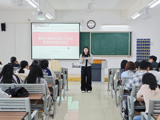 随后,2022级英语1班班长武可欣和2023级汉文8班团支书王雨露分享了各自在班风、学风建设中经验。武可馨从班级学习情况展开讲解,指出敢于在人前学习,不自卑、不落后,无论什么样的课程,都要带动班级同学认真听课、积极回答问题,同时也表明班级中其他班干的带头作用,鼓励班级同学积极参加各项比赛项目。王雨露则从学风建设经验、团日实践活动以及班级荣誉成果三个方面分享了经验,尤其对班级内部的模范带头作用、考勤制度和班级内部沟通协助方面进行了一系列详细的分享。