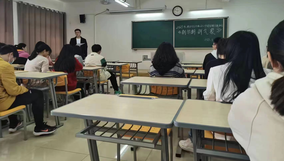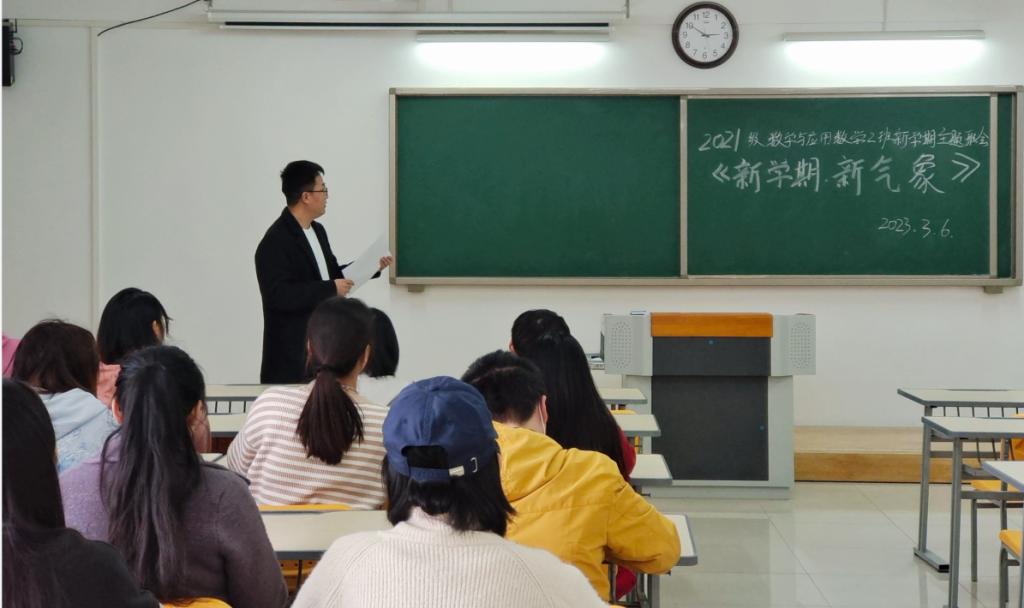 新学期如期而至,为了使同学们在新学期有一个良好的开端,确立新学期的目标和明确对未来的规划,我校best365足球官网2021级数学与应用数学(2)班于2023年3月6日在二教322教室召开“新学期新气象”的主题班会,班主任檀雷雷老师和2班全体学生参加会议。
