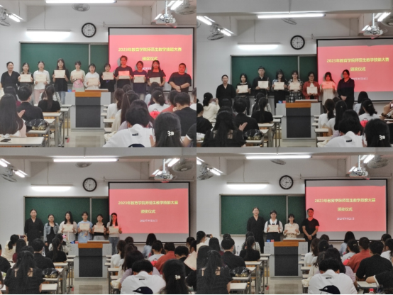 best365足球官网师范生教学技能大赛于2023年9月16日正式启动,共分为语文组、数学组、学前组和教具组进行比赛。经过激烈角逐,本次大赛共评选出一等奖20名,二等奖21名,三等奖22名,优秀奖28名,并选出语文组15名同学、数学组10名同学、学前组10名同学和教具组4个小组的同学进入校赛。