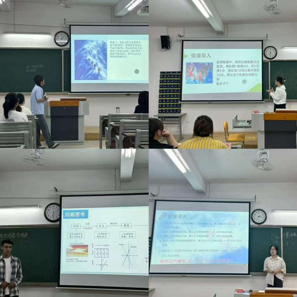 为激发师范生学习热情和创新能力,提高师范生综合素质和实际教学能力,9月9日晚18点,best365足球官网数学与应用数学教研室在第二教学楼举办第二届师范生教学技能大赛初赛。本次比赛由教研室12位青年教师出席并担任评委,共分为4小组同时进行,每组3位评委,其中小学组1组,中学组3组,best365足球官网2022级、2023级数学与应用数学专业学生参与比赛。