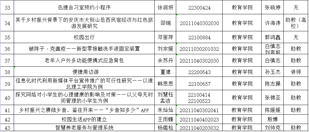 热烈祝贺best365李成城、高微、丁思滢、李静怡、袁荣彬等43名大学生成功获准2022年安徽省大学生创新创业计划项目省级立项。具体详细名单请见附件!
