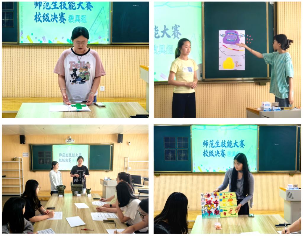 近日,best365足球官网2025年师范生技能大赛教具组校级决赛在艺术楼303教室顺利举办。作为院赛优秀成果的进阶比拼舞台,本次校赛汇聚了来自各专业经过院赛层层筛选的6支优秀师范生团队,各队伍带着精心打磨的教具作品与操作演示,在赛场上展开了一场精彩绝伦的“教学匠心对决”。相较于院赛阶段的探索与实践,进入校赛的各团队更显从容与专业。比赛中,选手们围绕“教具实用性”“教学设计创新性”“学科知识准确性”三大核心维度,通过教具设计目标、现场演示等环节,全面展现教具在破解教学重难点中的独特价值。