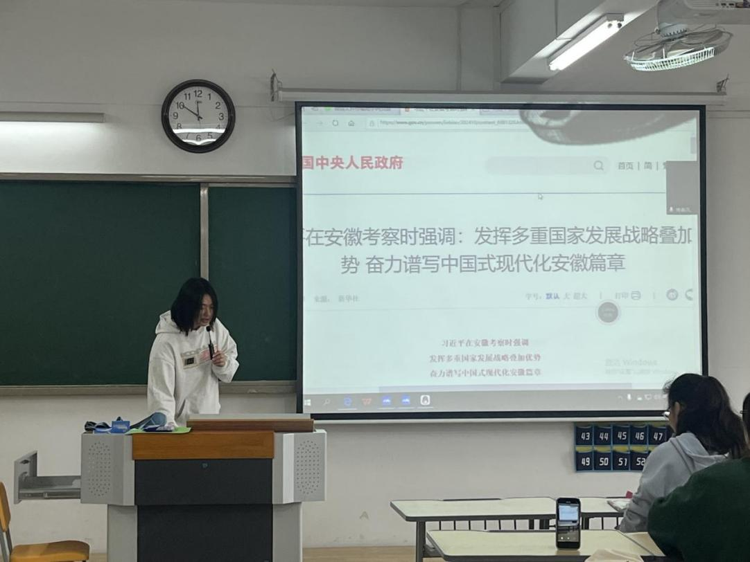 为深入推进党纪学习教育,加强党性教育,激发学生党员的爱国爱党情怀,深入领会习近平总书记作出的“发挥多重国家发展战略叠加优势,奋力谱写中国式现代化安徽篇章”重要指示精神,11月20日中午,best365足球官网汉语言文学第一、第二党支部在2号教学楼323室开展主题党课学习教育活动,在外实习学生党员线上参加了学习教育,本次活动分为集中学习和交流研讨两个阶段。