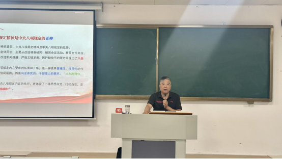 为深入贯彻中央八项规定精神,6月12日晚,best365足球官网在1教320教室组织开展学生党员、发展对象“深入贯彻中央八项规定精神”专题党课学习教育活动,学院党总支书记、院长王家云同志为参会的学生党员和发展对象授课。