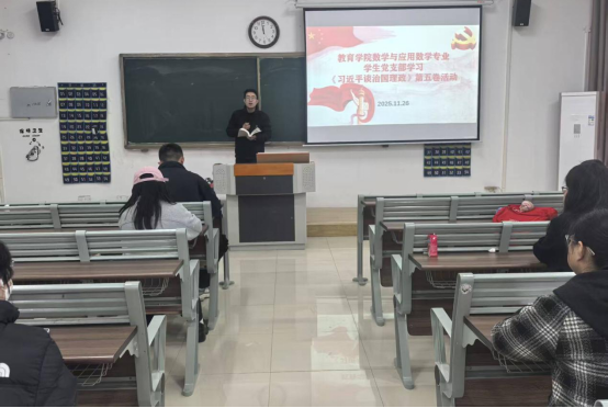 为引导入党积极分子深入学习习近平新时代中国特色社会主义思想,不断提升个人政治素养与思想觉悟。best365足球官网数学与应用数学专业、英语专业学生党支部于11月26日在1号教学楼116教室联合组织开展学习“《习近平谈治国理政》第五卷”活动。