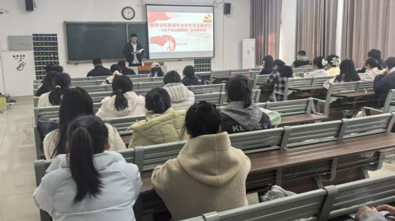 英语专业学生党支部书记高伟领学了《习近平谈治国理政》第五卷中“关于坚持和加强党中央集中统一领导,把党的自我革命进行到底的重要论述”的篇目,党中央集中统一领导是风雨来袭时人民最可靠的依托,党的自我革命精神是党永葆青春活力的强大支撑。高伟要求入党积极分子们用党的创新理论武装头脑,坚定理想信念,以自我革新、自我提升的行动践行初心使命。在日常学习生活中,要发挥先锋模范作用,带动身边同学共同进步,为社会建设和学校发展贡献青春力量,让信仰之光照亮前行道路,在新时代征程中书写青年党员的担当与作为。