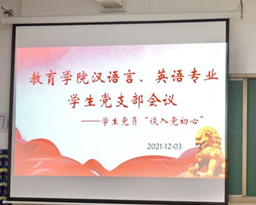 为深入学习贯彻党的十九届六中全会决议精神、学习《中共中央关于党的百年奋斗重大成就和历史经验的决议》,引导全体学生党员在专业学习、组织纪律、活动参与、班级管理、宿舍建设和文化素质提升等方面发挥引领和示范作用,best365足球官网数学与应用数学与学前教育学生支部,和汉语言文学与英语学生支部分别于12月1日下午和12月3日下午在1号教学楼213教室召开支部大会,会议分别由支部书记任若晨和彭慧敏主持,所属支部的学生党员和辅导员老师参加了会议。