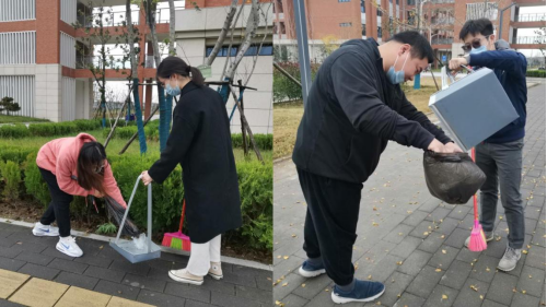 爱护校园的一草一木,是每个人责任,作为教师入党积极分子,更要做好模范作用。教师们带着清洁工具,沿着校园的主干道,清扫垃圾和寒风中飘零的落叶,并从草丛中捡起掉落的植物“身份证”信息牌,认真仔细地将它们挂好。随后,他们又来到艺术楼侧面的停车场,清扫被人遗忘的废弃物品,并将它们都送回了属于它们的“家”。
