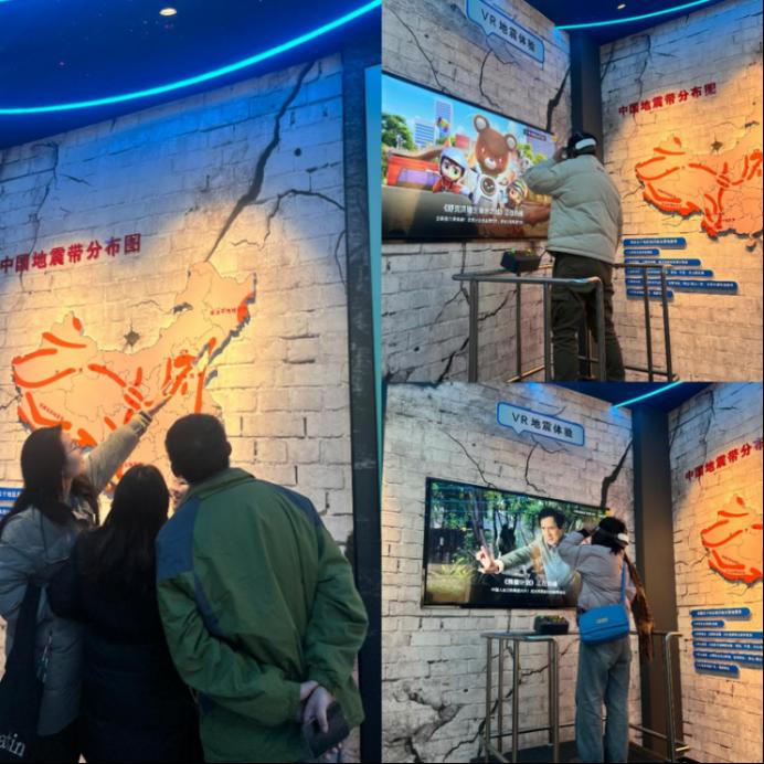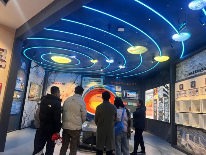 随后,教师们前往科普馆进行参观。该馆利用多媒体和虚拟现实(VR)等尖端科技,巧妙地将科学性、趣味性和教育价值结合在一起。在馆内,教师们通过深邃的蓝色“星空”和庞大的地球仪,探索了地球科学,揭开了宇宙的神秘面纱。借助多媒体技术,他们还亲身体验了地震模拟,学习了地震的相关知识,并掌握了自救技能。此外,通过观察岩石样本,教师们深入了解了淮北地区独特的地质结构和矿产资源,感受到了自然界的神奇和美丽。在这种轻松愉悦的氛围中,教师们不仅学习了地质学知识,还深刻体会到了“珍惜地球,实现人与自然和谐共存”的重要意义。