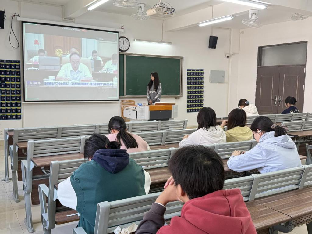 随后,全体党员集体观看了南昌市市委理论学习中心组学习《习近平谈治国理政》第五卷专题学习研讨会视频。通过聆听各领导在研讨会上的交流发言和理论阐释,大家进一步加深了对党中央决策部署的理解,增强了服务地方发展、投身现代化建设的责任意识。视频中领导干部带头学、深入悟的示范作用,也为学生党员提供了宝贵的学习参考。