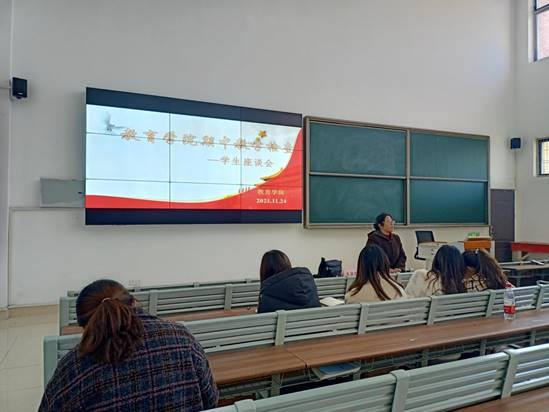 副院长孟向红说,召开学生座谈会的目的是想了解同学们学习和生活情况,听取同学们对学校教学管理、教师授课等方面的意见和建议,希望同学们畅所欲言。