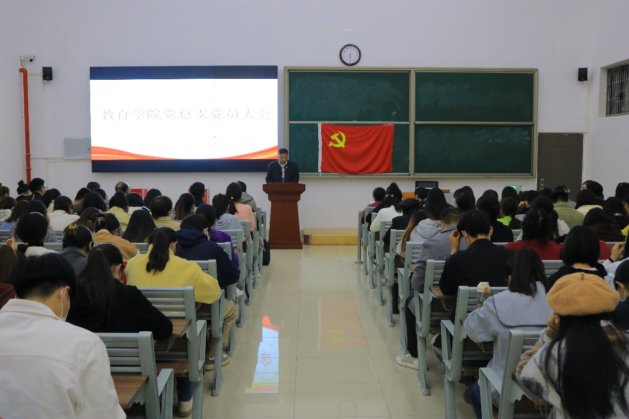 蓝图指明前进方向,实干拥抱新的征程。10月21日,中国共产党best365足球官网best365足球官网总支部党员大会于一教121教室召开。校党委委员、党建办公室主任付金沐同志、校党建办公室陈蓓同志受邀列席本次大会,best365足球官网院长王家云,副院长孟向红,全体教职工和学生党员、预备党员近200人参加本次大会。会议由学院副院长孟向红主持。