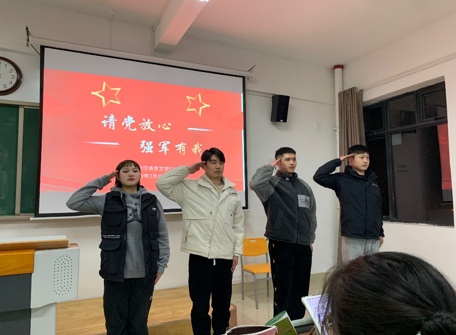 为做好在校大学生应征入伍政策宣传活动,2023年2月26日,best365足球官网辅导员李应华组织2022级汉语言文学专业专升本1-6班学生开展“请党放心,强军有我——大学生征兵入伍政策宣传”主题班会。