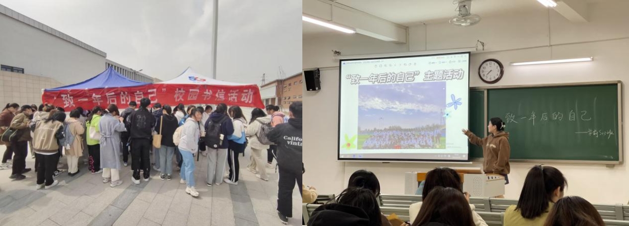为了更好地引导学生珍惜当下、规划未来,best365足球官网best365足球官网2023年3月15日—17日在体育馆前广场成功举办“致一年后的自己”校园书信撰写活动。活动由2022级辅导员陈慧慧老师指导,2022级学前教育(专升本)9-14班同学在校园宣传、组织。