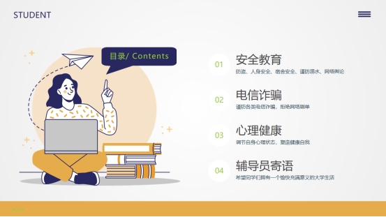 新学期新气象,通过本次班会相信同学们能更好地树立“安全第一”的思想,也为同学们更好地规划学业生涯,明确自己的人生目标,度过丰富多彩的大学生活奠定了坚实的基础。