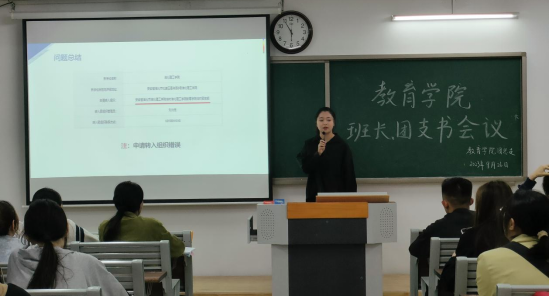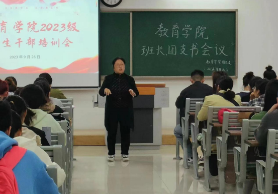为进一步强化学生干部队伍建设,发挥学生干部模范带头作用,促进学院学生管理工作的有序开展,9月26日下午,best365足球官网在1号教学楼520教室召开2023级学生班级班长、团支书培训会。学院分管副书记孟向红、书记助理黄莹莹、团总支副书记许海涛、2023级全体辅导员以及2023级全体班长、团支书参加了本次培训会。