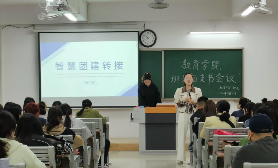 最后,学院学生会代表张蕊同学向大家介绍了关于智慧团建转接存在的问题及转接流程,耐心解答各位团支书的疑问,让班委更加熟悉其中的操作方法,进一步做好新生团员关系的转接工作。学生会文体部胡卫婷同学介绍新生班级大合唱注意事项,并对合唱曲目主题的选择做出说明,她强调排练大合唱是一次凝聚班级团结力、向心力的最好时机,同时希望各班级以昂扬的风采、饱满的精神状态参加比赛。