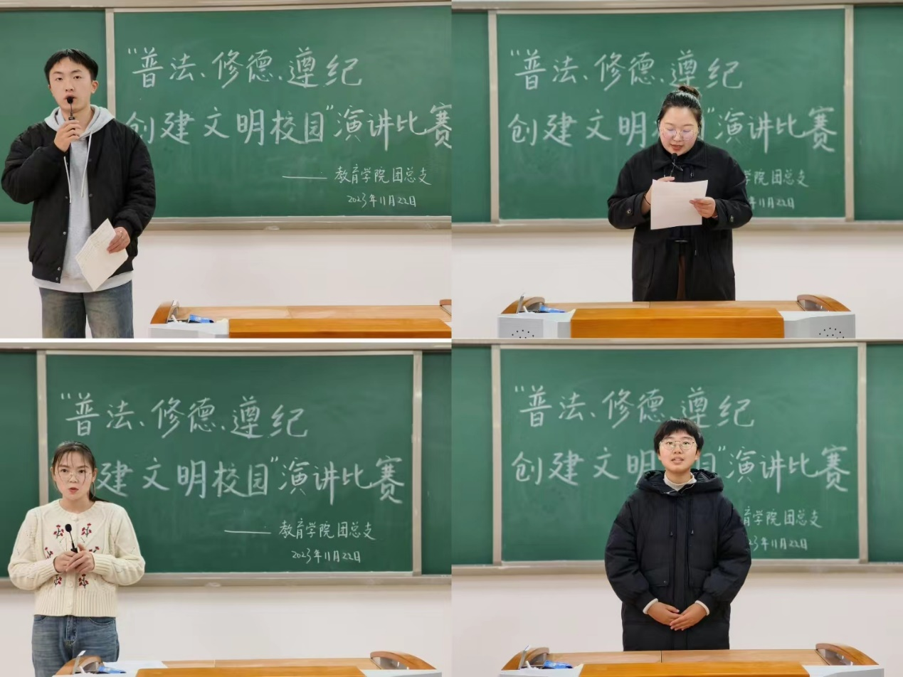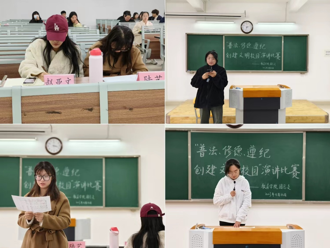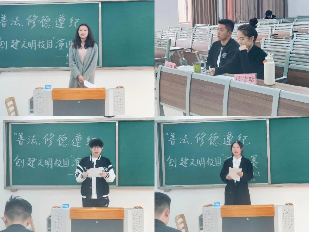 为落实学校《关于开展2023年“普法、修德、遵纪,创建文明校园”专项活动的通知》精神,提高同学们的法律意识,大力弘扬法治精神,创建学风校风优良的文明校园,best365足球官网于11月22日下午在2号教学楼412、413、414、415、416教室分别开展以“普法、修德、遵纪,创建文明校园”为主题的演讲比赛。学院2023级辅导员老师担任评委。