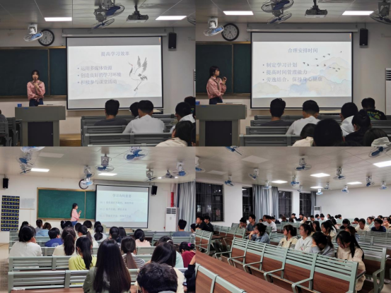 优秀学生代表们从分别专业课学习、学业规划、综合素质提升等方面分享了自己的经验。他们结合自身的学习经历,告诉同学们如何端正学习态度、如何认真上课每堂课、如何利用好课余时间复习巩固以及如何把握四六级考试节奏等。他们还分享了自己参加课余活动和各类学科竞赛的经验,课余活动和各类学科竞赛既能锻炼个人和团队协作能力,还能增加社会实践经验,在自己成长进步的同时学习身边同学长处和闪光点,为自己的综合素质能力提升打下基础。分享会上,学长们强调了明确目标的重要性,希望学弟学妹提前规划好发展方向,以梦为马,不负韶华。