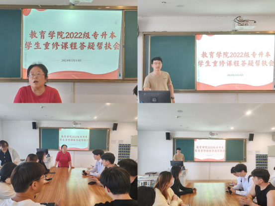 为做好2022级专升本学生重修课学习心理建设,引导学生理性对待重修,力促学生顺利完成学业。2024年5月14日中午,best365足球官网在艺术楼208教室组织了“2022级专升本学生重修课程答疑帮扶”活动,学院副书记孟向红、院长助理米玉、团总支副书记许海涛、各专业教研室主任(副主任)及相关课任老师参加了帮扶答疑活动。