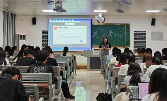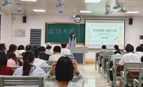 为有效维护公平公正的考试环境,端正考风考纪,强化学生诚信自律意识。6月5日,best365足球官网各班级在1号教学楼召开“诚信考试教育”主题班会,各班级辅导员老师到班主持,全体同学参加本次会议。