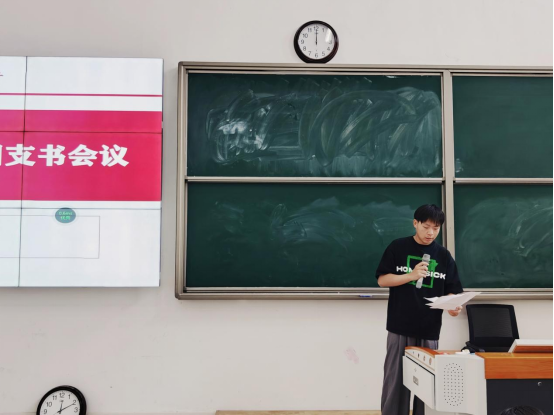 22级英语3班班长张克武、23级汉文8班团支书王雨露分别在会上做了交流发言,分享了班级和团支部的工作经验。