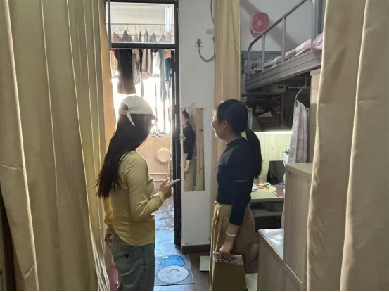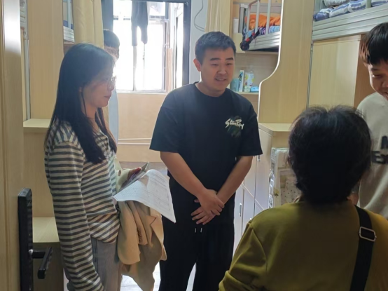 在走访排查中辅导员老师与同学们亲切交谈,仔细询问学习生活情况并提出近期出现的问题,希望同学们尽快适应新学期,做好学期规划,与各科老师友好交流,积极参与近期学校学院组织的各类活动和比赛,不断提升自己。辅导员老师们还特别关心同学们在宿舍的人际交往关系等方面情况,希望新学期同学们积极调整心态,建立和谐的室友关系。此外,辅导员老师们还对学生宿舍进行了细致的安全卫生检查,确保学生拥有安全、整洁的宿舍环境,同时提醒学生注意消防安全,不断提升自身的安全意识,禁止使用大功率电器和违禁物品。对于卫生状况欠佳的宿舍提出及时整改,并会持续关注。