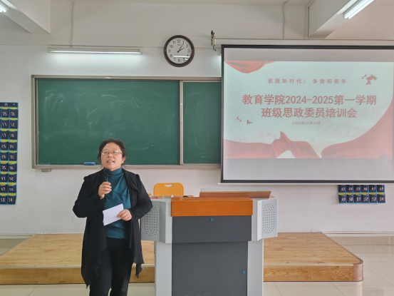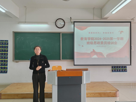 培训会上,黄莹莹老师详细介绍了思政委员的职责和义务,格外强调思政委员应当政治思想正确、政治立场坚定,并且拥有一定的政治理论功底,同时,她希望各位思政委员帮助思政老师开展各种思政活动,协助辅导员老师在班级做好思想政治方面的工作。在立足自身发展的同时,服务、关爱和热爱班集体。