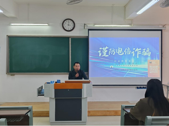 首先,孟春江律师从电信诈骗的概念、常见电信诈骗手段、电信诈骗典型案例、如何预防电信诈骗等方面生动形象地普及了有关防范电信诈骗的法律知识。在谈到电信诈骗的典型案例时,特别强调了网络购物诈骗、网络中奖诈骗、冒充客服进行诈骗等诈骗“陷阱”,他希望学生们能够高度重视电信诈骗问题,避免财产损失。