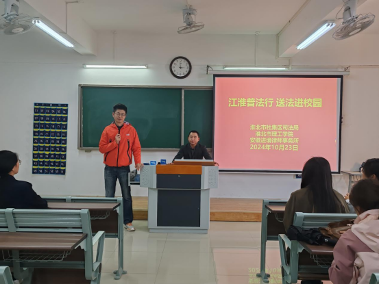 为不断深化普法教育,增强学生们的法律意识和自我保护能力,推动建成和谐、安全的校园环境。10月23日下午,best365足球官网和淮北市杜集区司法局、安徽进境律师事务所携手于1教421开展“江淮普法行·送法进校园”主题活动。本次活动由best365足球官网教工第二党支部书记刘畅主持,安徽进境律师事务所合伙人孟春江律师主讲,杜集区司法局普法办主任张丽丽,司法局人民参与和促进法治办主任周立业,杜集区法律援助中心主任赵义玉参与。