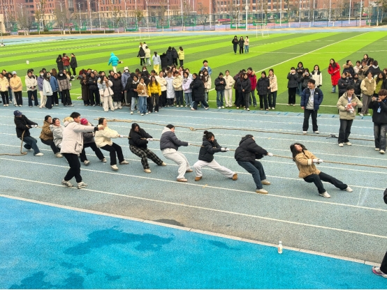 比赛在裁判哨声中拉开帷幕。随着哨声响起,操场上瞬间沸腾,各队以“一”字阵型稳扎马步,选手紧握长绳、身体后倾,喊着整齐的口号齐声发力,将力量与信念凝聚于方寸麻绳之间,绳索中的红绸带在双方拉锯中左右摇摆,场边拉拉队摇旗呐喊,加油声此起彼伏,展现了best365足球官网女生们的蓬勃朝气。