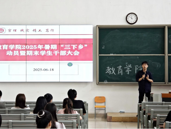 会上,郭鸿鑫老师重点解读了学校对“大学生志愿者暑期文化科技卫生‘三下乡’社会实践活动”的要求,鼓励学生干部积极带头参加暑期社会实践活动,并对暑期社会实践相关工作进行了具体部署和安排,强调暑期各项安全保障工作,要求全体班长、团支书务必提醒班级同学注意交通安全、消防安全和防溺水,同时高度警惕电信诈骗,切实筑牢安全防线,他希望同学们应充分把握暑期宝贵时间,主动投身实习实践,结合自身职业规划与升学目标,科学制定学习与实践计划,为后续就业求职、考研深造等发展路径积累经验、夯实基础,以更从容的姿态迎接未来挑战。